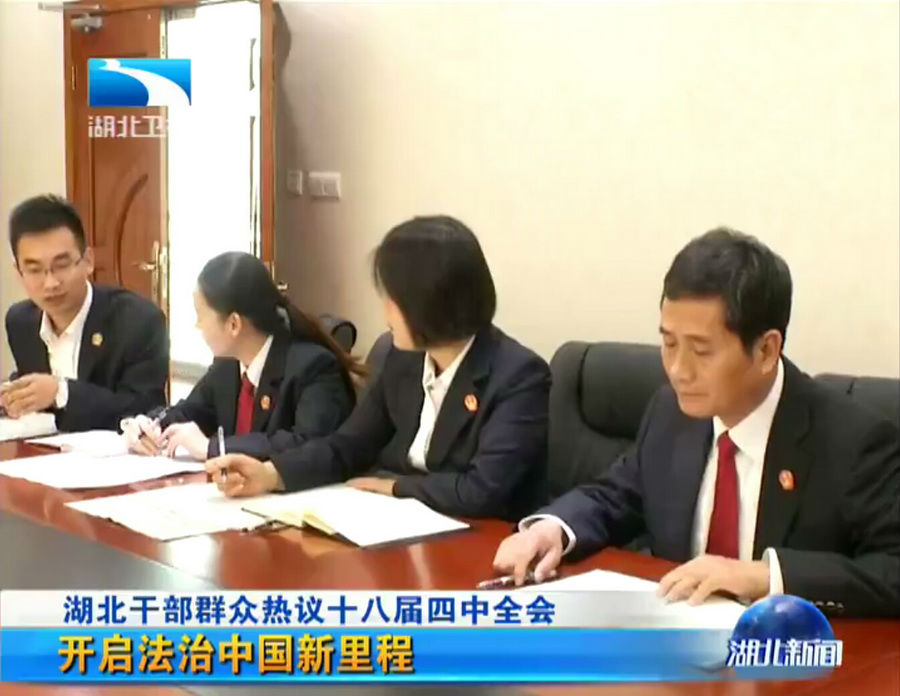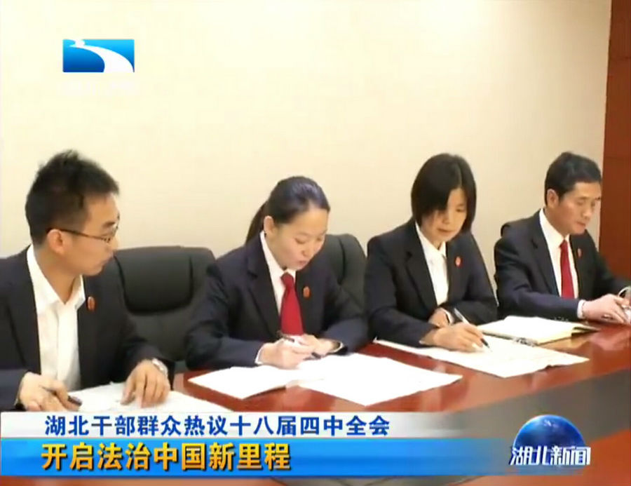 党的十八届四中全会成为湖北广大干部群众关注的焦点、热议的主题。我院干警从公报的字里行间,从媒体的分析解读中,领会会议精神,畅谈心中期待。湖北卫视报道链接:http://t.cn/R7XWBGn