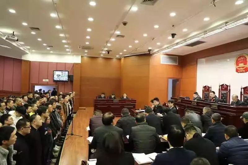 2019年2月25日至28日,杭州中院在桐庐法院大法庭公开开庭审理此案,本次开庭持续了4天2夜,到庭参加辩护的律师达71人,其中法律援助律师15人,共调动法警、特保80名。近百名被告人家属及被害人旁听了庭审。